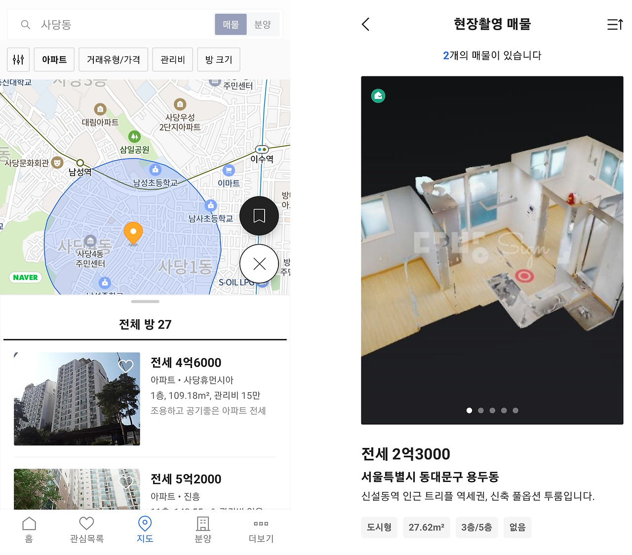 하지만 현장촬영 기능을 사용하여 등록된 매물은 지방은 물론 서울 도심지에서도 찾아보기가 힘들다.
