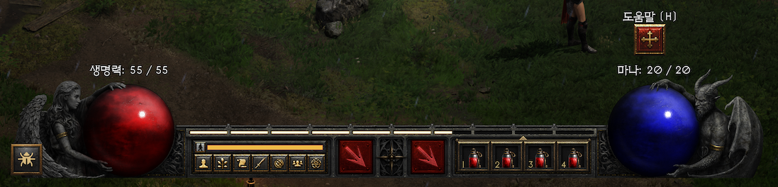그런데 게임은 비트맵 이미지가 UI의 주재료가 된다. 아래의 이미지를 보면 이해가 될 만도하다. 백터 이미지는 단순한 형태를 만드는 데 적합한 제작방식이다. 게임은 그림에 가까운 복잡하고 유려한 UI를 사용하기 때문에 비트맵 사용은 최선의 선택일 것이다. 버튼도 마찬가지로 초창기 안드로이드 개발에 사용되던 나인패치와 유사한 방법으로 구성한다.