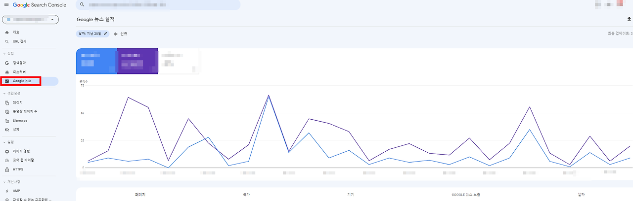 언론사 웹사이트의 경우는 일반 기업, 쇼핑몰과 또 다르게 ‘NEWS’탭이 새롭게 생성됩니다. 특히 구글의 경우 해당 탭을 통해 여러 메시지를 보내고 있습니다. 해당 탭에선 뉴스 노출, 기기, 국가, 페이지 등의 대한 정보도 받아 볼 수 있고 실질적으로 노출이 제한되고 있는 뉴스 또한 찾아낼 수 있죠.