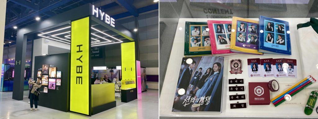 대형 LED 스크린으로 자사 작품의 하이라이트 영상을 반복 상영하는 시네마형 부스부터 대표작의 포스터로 벽면을 가득 채운 부스, 드라마의 장면을 그대로 재현한 포토월과 굿즈를 전시하며 방문객들이 몰입할 수 있는 공간을 연출한 부스까지…. 관람객들은 자연스럽게 부스 곳곳을 돌며 기념사진을 남기고, 브랜드 담당자와 소통할 수 있었는데요. B2B와 B2C 모두를 고려한 마케팅 전략이 돋보였습니다.