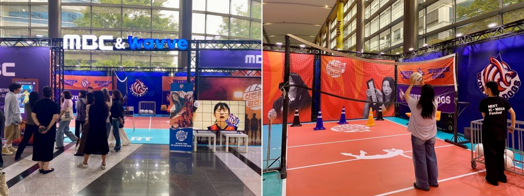 K-OTT 체험관에는 MBC의 신규 콘텐츠 <신인감독 김연경>을 비롯해 쿠팡플레이의 <슈팅스타 2>, TVING의 KBO 리그 중계 콘텐츠를 테마로 꾸며진 부스를 볼 수 있었는데요. 각각 콘셉트에 맞게 배구, 축구, 야구 종목을 체험할 수 있는 게임과 포토존, 작품 티저 상영 등 체험형 프로그램이 준비되어 있어 지나는 사람들의 발길을 붙잡았습니다.