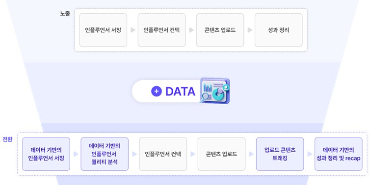 데이터 기반의 인플루언서 마케팅은 다음과 같은 과정이 함께합니다.