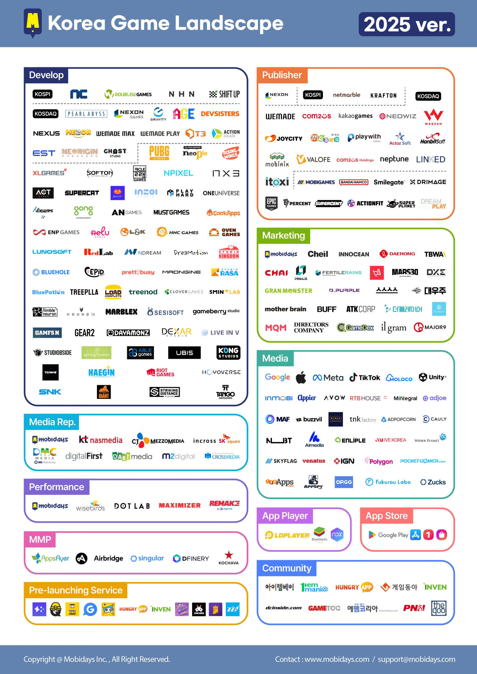 국내 게임 생태계를 담은 ‘Korea Game Landscape(이하 게임 랜드스케이프)’ 3.0 버전을 공개합니다. 5년 만에 새롭게 업데이트된 이번 랜드스케이프는 2025년도 게임 산업군을 한눈에 조망할 수 있도록 작성되었습니다. 이번 자료를 통해 변화된 대한민국 게임 산업군을 확인해 보시기 바랍니다.