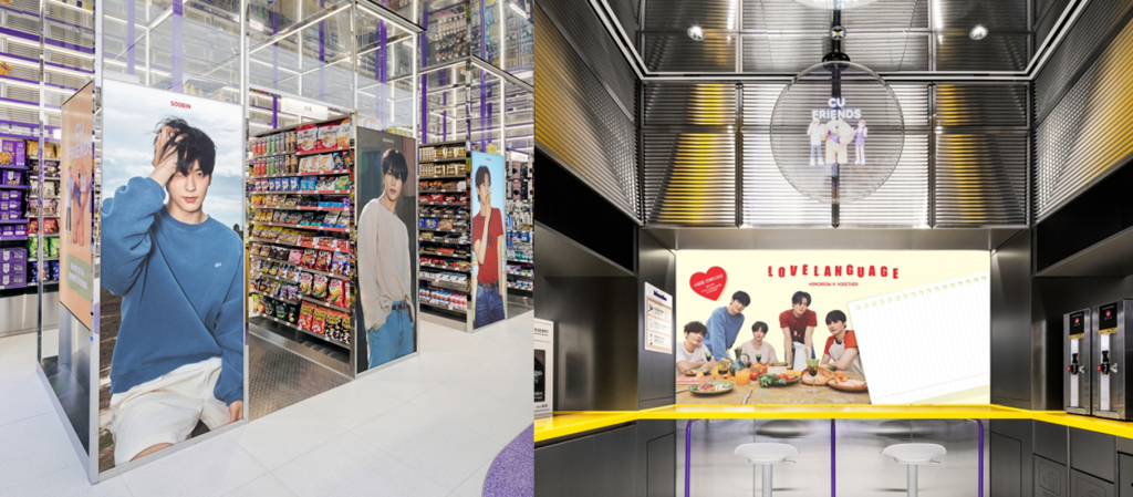 25년 7월에는 K-POP 그룹 ‘TXT’와의 협업도 이루어졌습니다. ‘TXT 별모아 스낵 4종’ 출시와 더불어 편의점 팝업스토어 이벤트를 진행했는데요. 매장 외관을 멤버별 대형 포스터로 꾸미고, 내부에는 포토존과 앨범 전용 진열장 등을 마련해, K-POP 팬들에게 색다른 즐길 거리를 제공했어요.