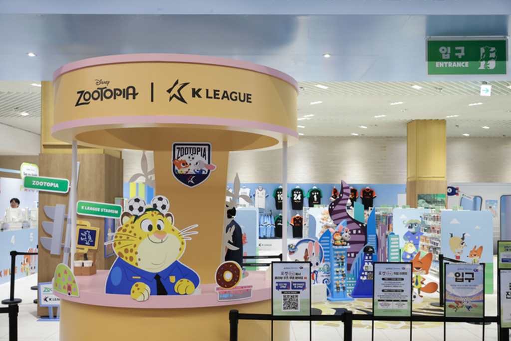 25년 7월에는 기존의 편의점 매장에서 벗어나, 새로운 공간에서의 팝업스토어도 진행되었습니다. CU와 한국프로축구연맹 및 월트디즈니 컴퍼니 코리아(디즈니코리아)가 함께한 ‘K-리그 주토피아’ 팝업스토어가 더현대 서울에서 열린 것인데요.