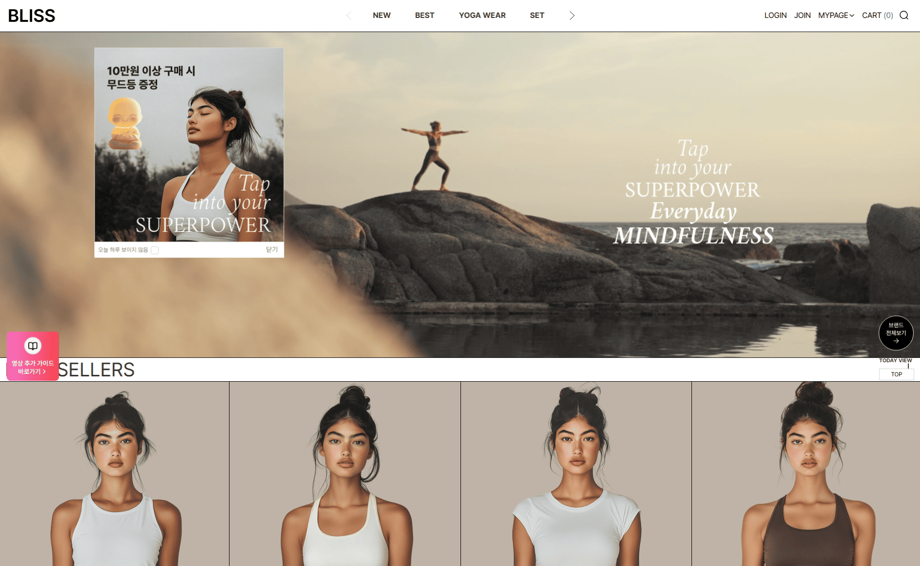 ✔️ 강렬하면서도 절제된 모델 피팅컷을 메인 상단에 배치해 시선을 집중시켰어요.