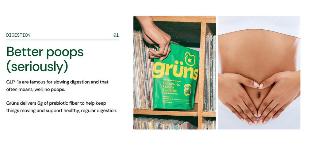 누구나 공감할 수 있는 고통을 없애주겠다는 메시지에는 큰 설득이 필요하지 않습니다. 그륀스(Grüns)는 이런 메시지 전략을 적극적으로 활용해 초기 고객들을 빠르게 모읍니다.