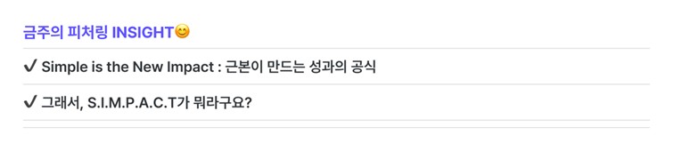 이에 피처링은 그 전환점의 계기가 될 핵심 키워드로 SIMPACT(Simple + Impact)를 제안합니다. SIMPACT는 근본(Simple)에 집중할수록 더 큰 임팩트(Impact)를 만들 수 있다는 전략적 인사이트에서 출발한 키워드입니다.
