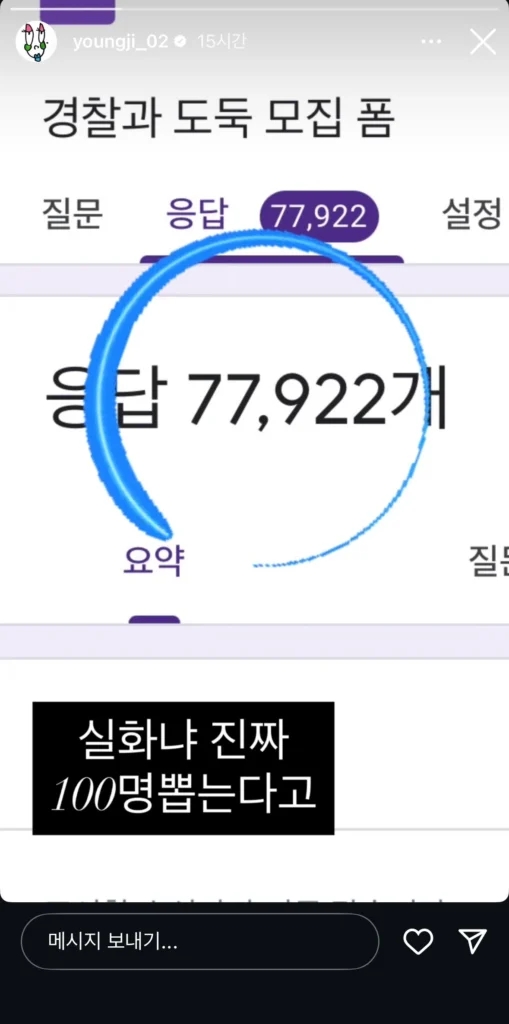 래퍼 이영지가 SNS를 통해 대규모 경도 대회를 예고하며 장소 대관 과정까지 공개하자, 100명을 모집한다는 참여 폼에 무려 7만 8천여 개의 응답이 모인 겁니다.