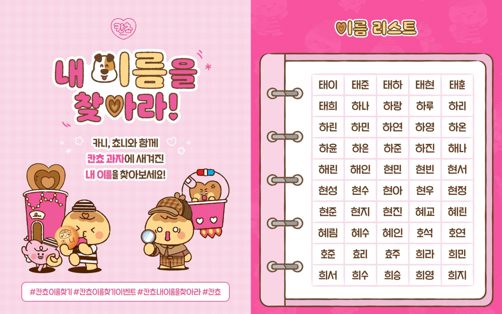제품 출시와 동시에 롯데웰푸드 공식 SNS에 칸쵸 이름 리스트가 공개되었고, 소비자들은 자신의 이름을 찾기 위한 ‘칸쵸깡’에 참여하며 자연스럽게 ‘이름 찾기’가 하나의 놀이처럼 확산되기 시작했는데요.