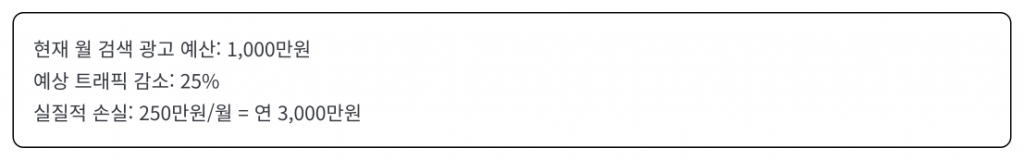 이것은 단순히 트래픽이 줄어드는 문제가 아닙니다. 광고비를 지출했지만, 고객이 도달하지 않는다는 의미입니다.