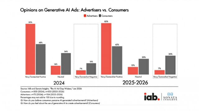 미국 광고업계 단체 IAB에 따르면, 광고 업계 임원의 82%는 “Z세대가 AI 광고를 좋아할 것”이라 예상했지만, 실제 긍정 응답은 45%에 그쳤습니다.
