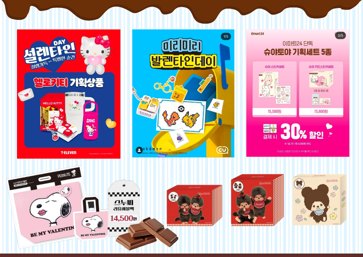 눈에 띄는 점은 올해 밸런타인데이 전략의 중심이 ‘초콜릿’이 아니라 캐릭터 IP라는 점입니다.