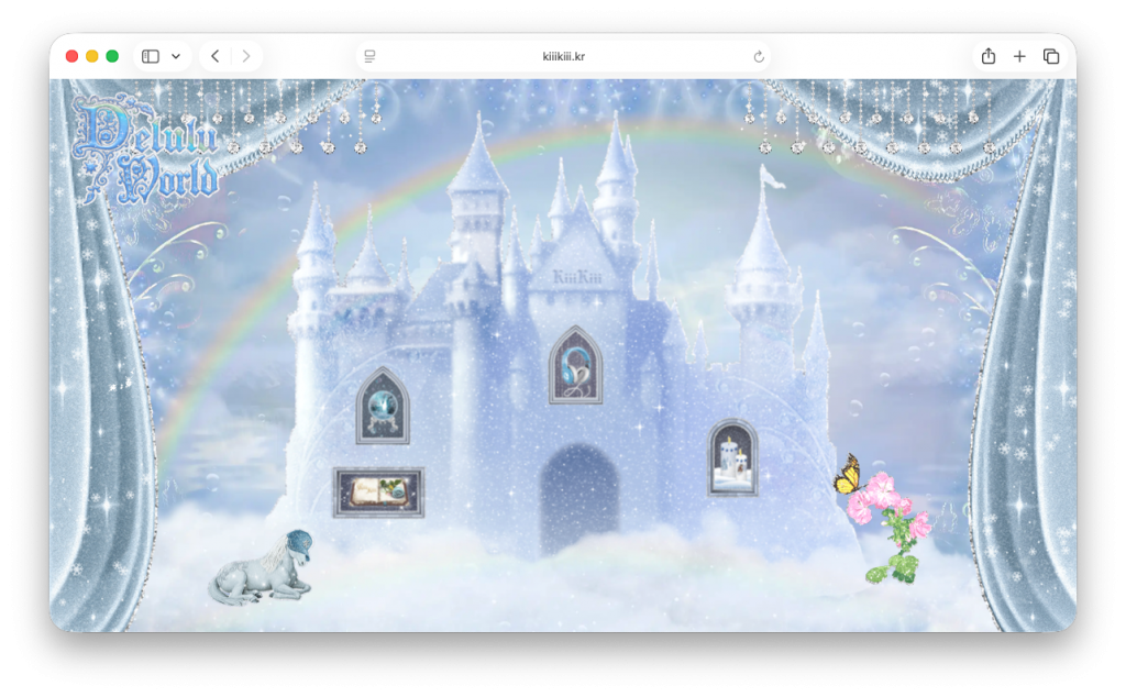 이번 웹사이트는 ‘Delulu World’라는 이름 아래, 총 다섯 개의 테마로 구성되어 있습니다. 홈페이지를 구경하다 보면 크리스마스, 불꽃놀이, 동화, 비눗방울, 미러볼 콘셉트로 꾸며진 페이지가 있고, 그 안에서 포토 부스, 무드 이미지, 팝업 창, 동화까지 다양한 콘텐츠를 체험할 수 있죠. 그중에서도 에디터가 특히 재미있게 본 파트를 중심으로 더 자세하게 정리해 보았어요.
