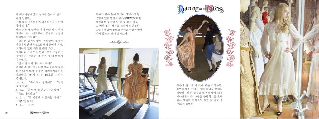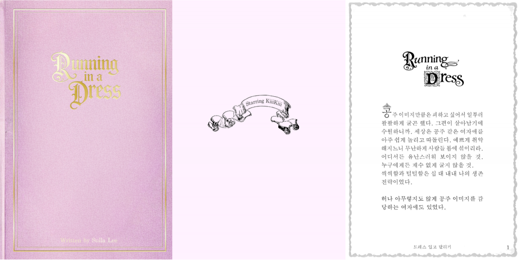 ‘공주 파티’라는 소재를 중심으로 한 ‘드레스 입고 달리기’는 이슬아 작가와 협업한 동화예요. 드레스를 입고 러닝머신 위를 달리고, 용한 할머니, 읽다 보면 마음에 남는 문장들까지. 평소 느껴온 키키만의 무드가 담긴 스토리로 구성된 동화이죠.