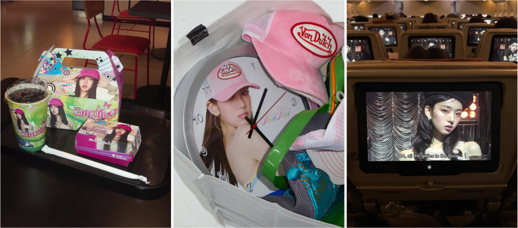 비행기 모니터, 뽑기 기계, 샴푸, 자판기처럼 일상적인 사물 속에 자연스럽게 스며든 모습으로 등장하면서, ‘어디에나 존재하는 키키’라는 메시지를 위트 있게 보여주었죠. (목업(Mock-up) 같은 디자인이라 에디터도 몇 번이나 다시 보았어요!) 특히 타이틀곡 ‘404(New Era)’를 상징하는 오브제와 문구가 이미지 곳곳에 배치돼 있어, 자연스럽게 앨범 콘셉트에 대한 정보도 함께 전달하고 있습니다.