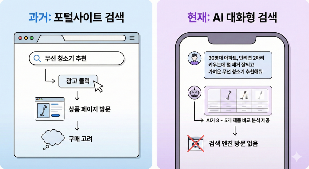 사용자가 “무선 청소기 추천”이라고 검색하면, AI는 그 뒤에 숨은 맥락을 읽습니다.