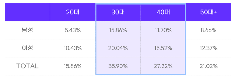 이 데이터를 단순히 연령과 성별로만 보면 30대 여성의 관심이 높다고 볼 수 있지만, 맥락을 조금 더 들여다보면 집안일의 부담을 본격적으로 체감하는 생활 단계와 맞물려 있다는 해석이 가능합니다.