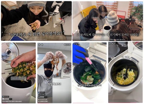 이런 미닉스의 마케팅 활동 중 눈여겨볼 만한 점이 있는데요. 바로 ‘극한 음쓰처리기’입니다. 여러 유튜버들이 소주병, 파인애플 껍질, 아보카도 씨앗처럼 쉽게 분쇄되지 않을 것 같은 재료들을 넣어 미닉스의 성능을 확인시켜 주는 콘텐츠입니다.