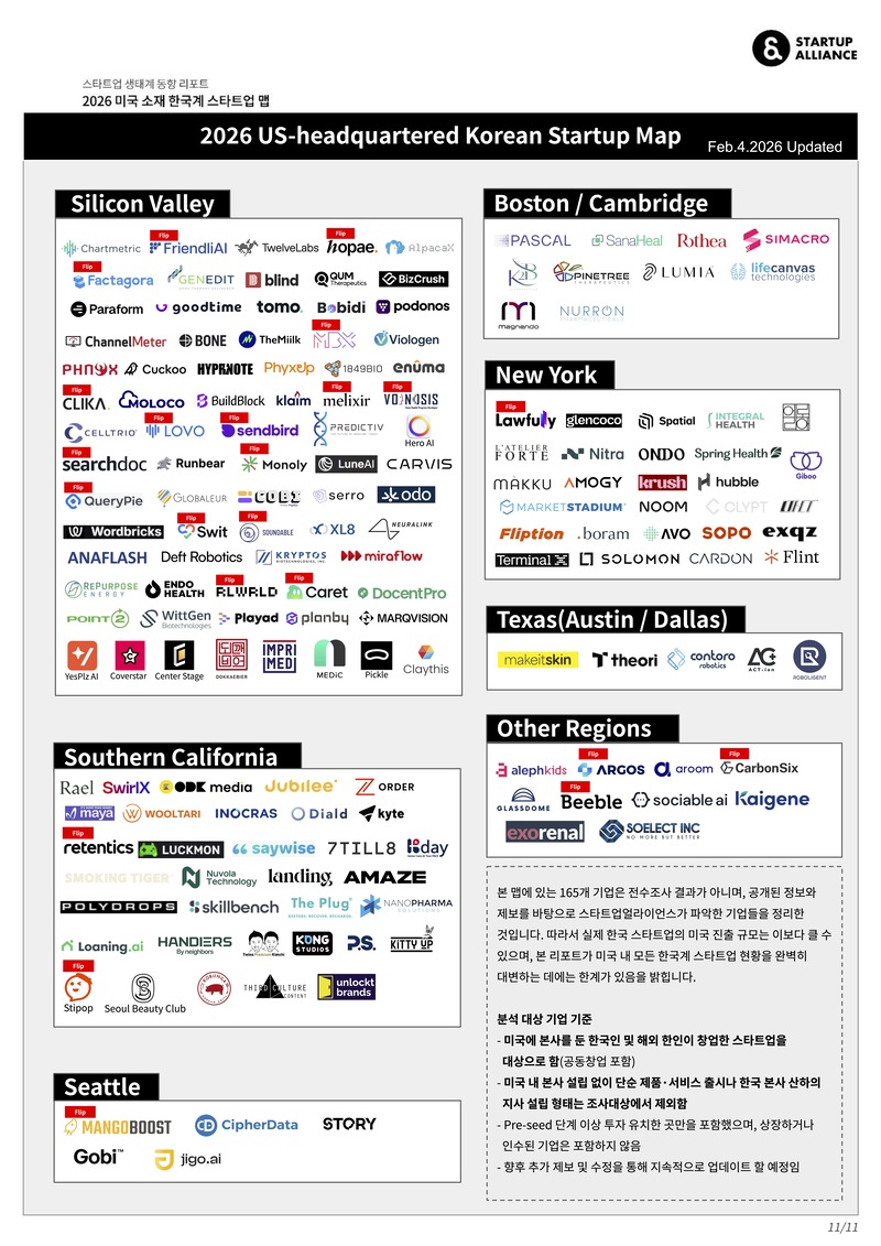 *본 콘텐츠는 스타트업얼라이언스 「2026 미국 소재 한국계 스타트업 맵」 리포트를 바탕으로 재구성되었습니다.