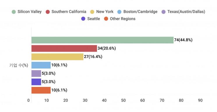 미국 내 한국계 스타트업의 80% 이상이 특정 거점 도시에 모여 있습니다.