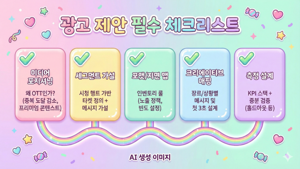 미디어 전략에서 OTT를 언급하는 것만으로는 차별화가 어렵다. 차이는 ‘운영’이 아니라 ‘설계’에서 난다. 아래 3가지를 제안서에 구조로 넣으면, “우리는 OTT를 이해한다”가 아니라 “우리는 OTT로 성과를 만들 수 있다”로 바뀐다.