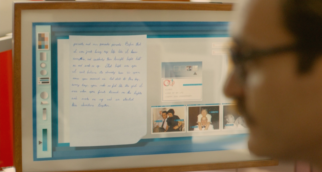 영화 Her 중 테오도르가 업무를 하고 있는 장면