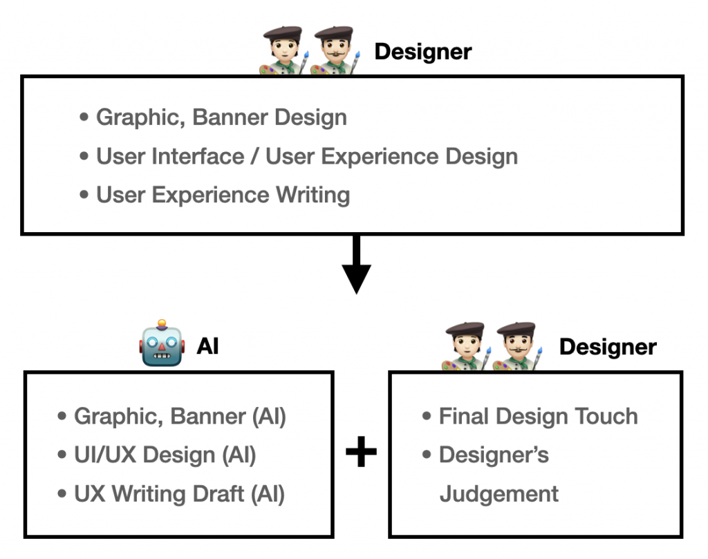 리서치를 진행할 때 직접 사람들을 만나는 횟수가 줄어들 수 있고, 아이디어들을 발산하고 수렴하는데 포스트잇으로 Affinity Diagram을 만드는 경우도 점차 사라질 거예요. UX Writing 역시 가이드만 잘 정립되어 있으면 기본적인 퀄리티를 보장할 수 있고. 데이터 역시 쿼리로 직접 뽑고 추이를 보고 통계를 직접 뽑아 인사이트를 뽑는 일 역시 AI가 더 잘해주는 시대가 되었습니다.