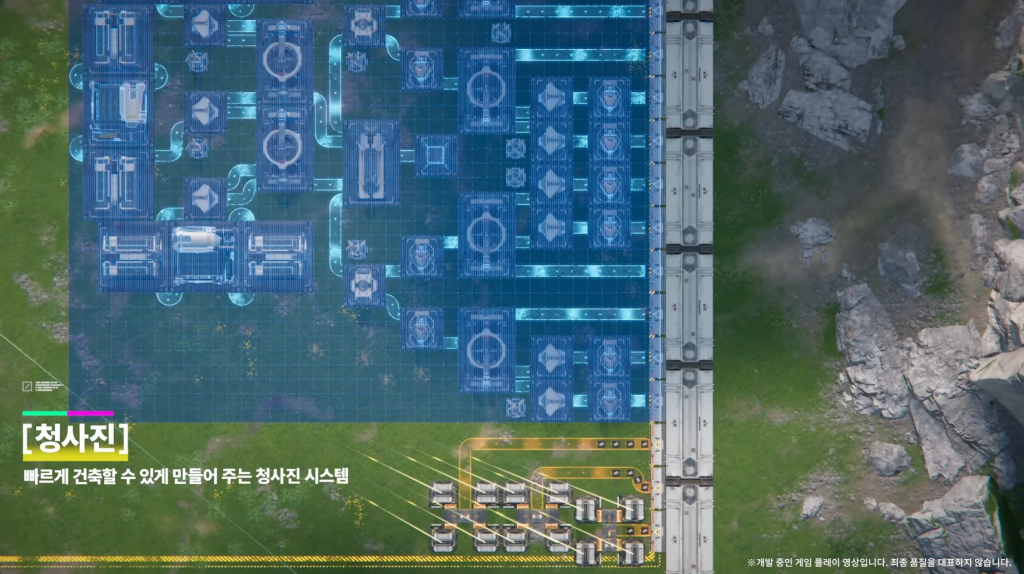 청사진 시스템을 통한 공장 빠른 배치. 복잡한 생산 라인을 저장하고 즉시 재현할 수 있다. (출처: 출처: 명일방주: 엔드필드 공식 유튜브)