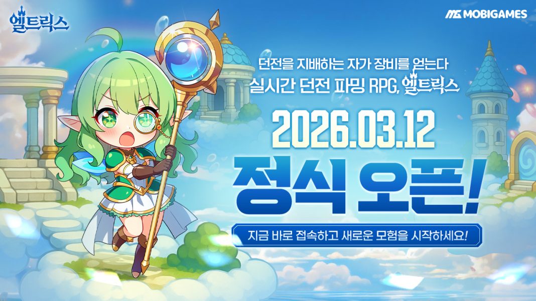 종합 미디어 콘텐츠 그룹 모비데이즈(363260)의 자회사인 ㈜모비게임즈(대표 유범령)는 모바일 던전 파밍 RPG ‘엘트릭스’가 3월 12일 오후 12시 구글 플레이스토어와 iOS 앱스토어를 통해 국내 정식 출시된다고 밝혔다.