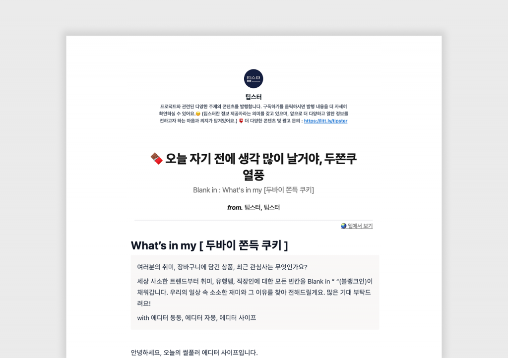 업계 소식을 빠르게 정리해 주는 레터가 필요한지, 흐름을 분석해 주는 레터가 필요한지 목적을 분명히 해 보세요.
