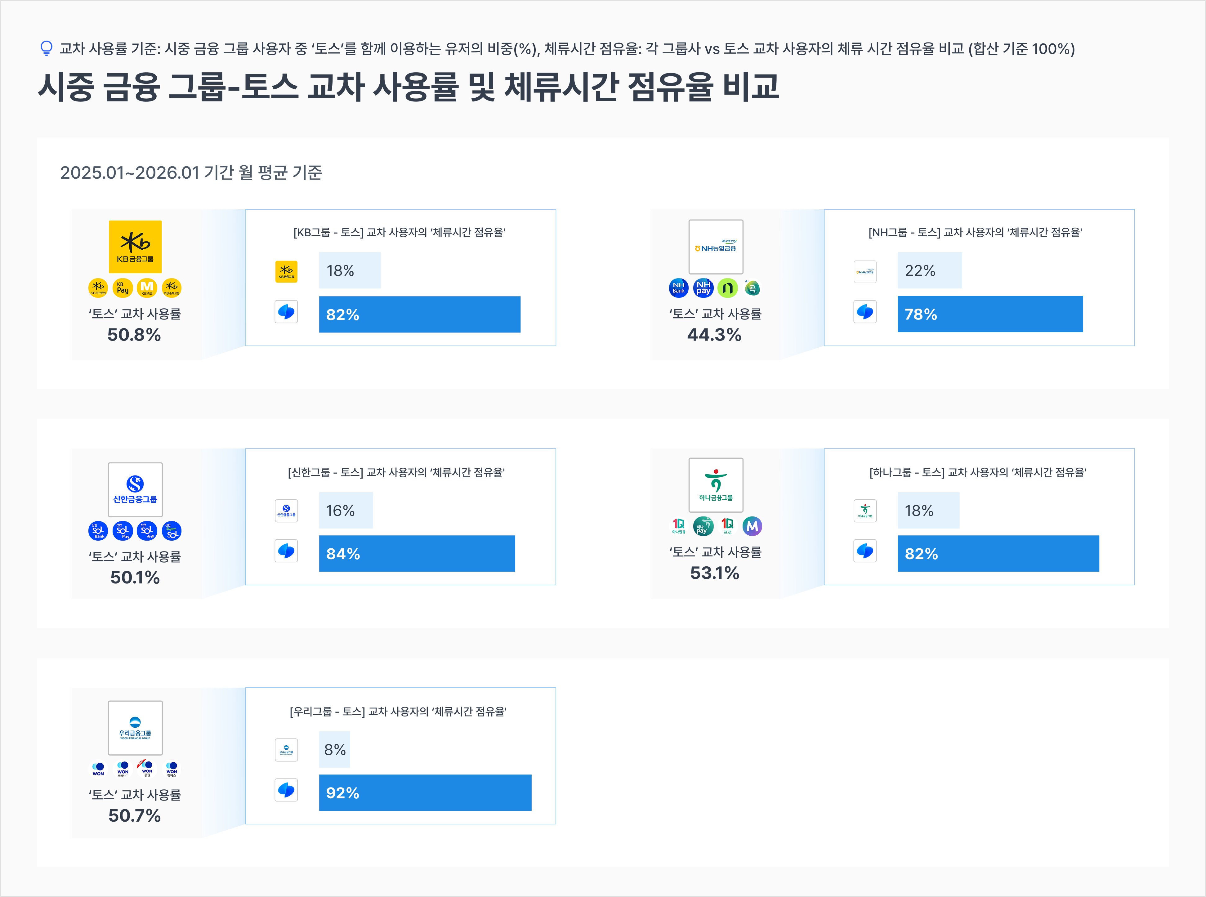 시중 금융 그룹-토스 교차 사용률 및 체류시간 점유율