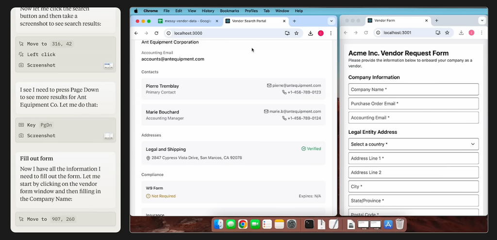 이 기능의 핵심은 고도화된 시각적 지능과 행동 계획 능력의 결합에 있다. 클로드는 화면상의 수많은 요소 중 사용자의 지시를 수행하기 위해 필요한 버튼이나 입력창이 어디에 있는지 밀리미터 단위로 정확하게 파악한다. 예를 들어 “어제의 지출 내역을 웹뱅킹에서 조회해 엑셀 파일로 정리하고 팀 슬랙 채널에 공유해 줘”라는 명령을 받으면, 클로드는 브라우저 실행, 로그인, 데이터 추출, 엑셀 입력, 슬랙 전송이라는 복합적인 단계별 작업을 스스로 계획하고 실행한다.