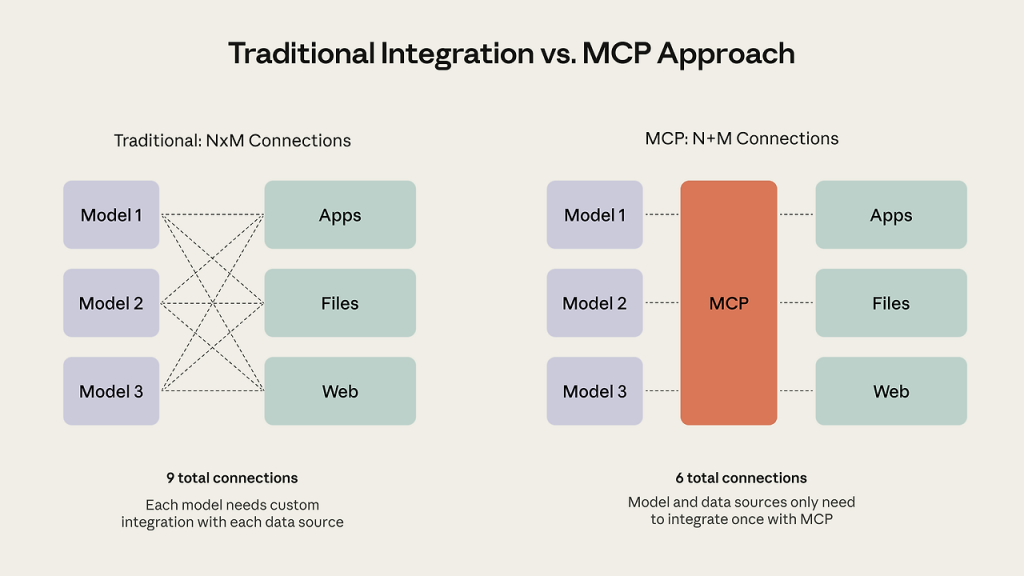 모델 컨텍스트 프로토콜(Model Context Protocol, MCP)은 인공지능 모델이 외부의 방대한 데이터와 다양한 도구들에 접근할 수 있도록 연결하는 개방형 산업 표준이다. 기존에는 인공지능 모델마다 각 도구(슬랙, 깃허브 등)를 연결하기 위해 개별적인 통합 코드를 작성해야 했으나, MCP는 이를 하나의 공통된 인터페이스로 표준화함으로써 마치 USB 포트 하나로 수많은 기기를 연결하듯 인공지능의 연결성을 극대화했다.