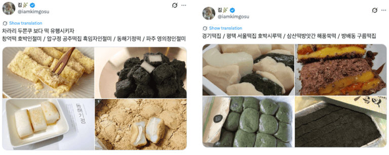 이러한 추세는 단순히 한 제품의 유행을 넘어, ‘떡’에 대한 관심으로 확장되고 있다고 볼 수 있는데요. 자극적이고 단 디저트 대신 비교적 건강한 간식이라는 점에서 Z세대의 사랑을 받고 있죠. 창억떡 외에도 ‘경기떡집’, ‘오복떡집’, ‘행복한 떡집’까지 다양한 로컬 떡집이 함께 언급되고 있고요. SNS에서는 동네 떡집을 추천하거나 후기를 공유하는 콘텐츠도 활발히 업로드되고 있죠.