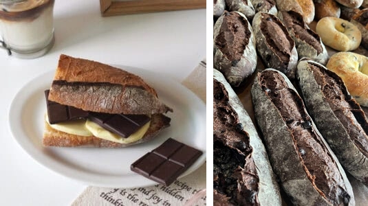 이러한 트렌드는 또 다른 유행을 낳았는데요. 바로 ‘초코 바게트’입니다. 작년부터 시중에서 판매하는 바게트에 초콜릿을 넣어 먹는 ‘다크 초코 바게트’ 유행부터 시작해, 최근에는 베이킹 과정에 초콜릿을 넣은 ‘초코 바게트’가 특히 핫하죠.