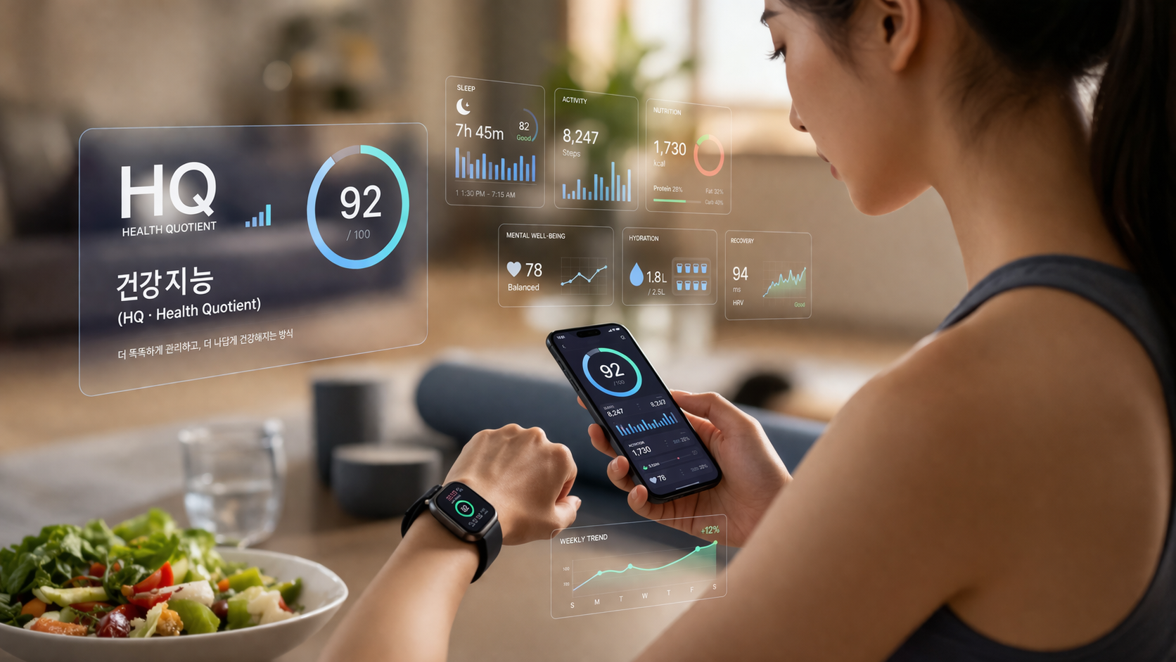 『트렌드코리아 2026』은 이를 소비자의 건강관리 역량이 진화하고 있다는 점을 짚어 ‘건강지능(HQ·Health Quotient)’이라고 정의했다. 마치 과거에는 IQ(지능지수), EQ(정서지수)를 성공의 필수 조건으로 꼽았던 것에 빗댄 것으로, 건강관리가 삶의 핵심이 되는 현상을 이르는 말이다. 그렇다면 요즘 사람들은 어떻게 건강지능을 키워가고 있을까?