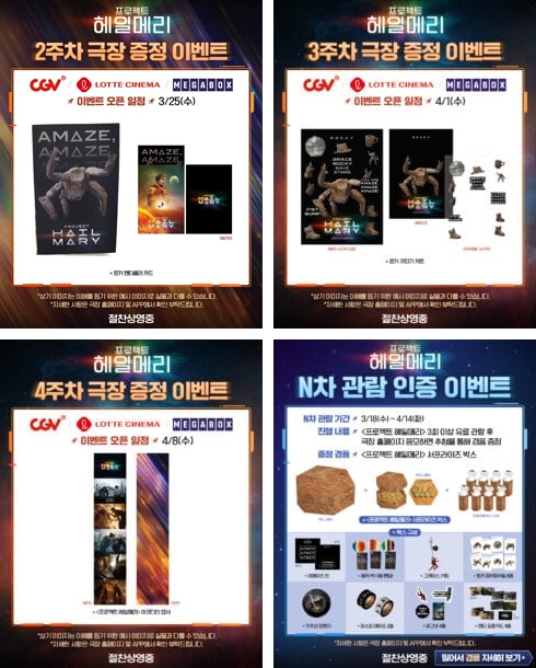 CGV 역시 자사의 포맷(스크린X, IMAX, 4DX 등)과 연계한 주차별 특전 증정 이벤트를 꾸준히 진행하며 관객 방어전에 나섰습니다.