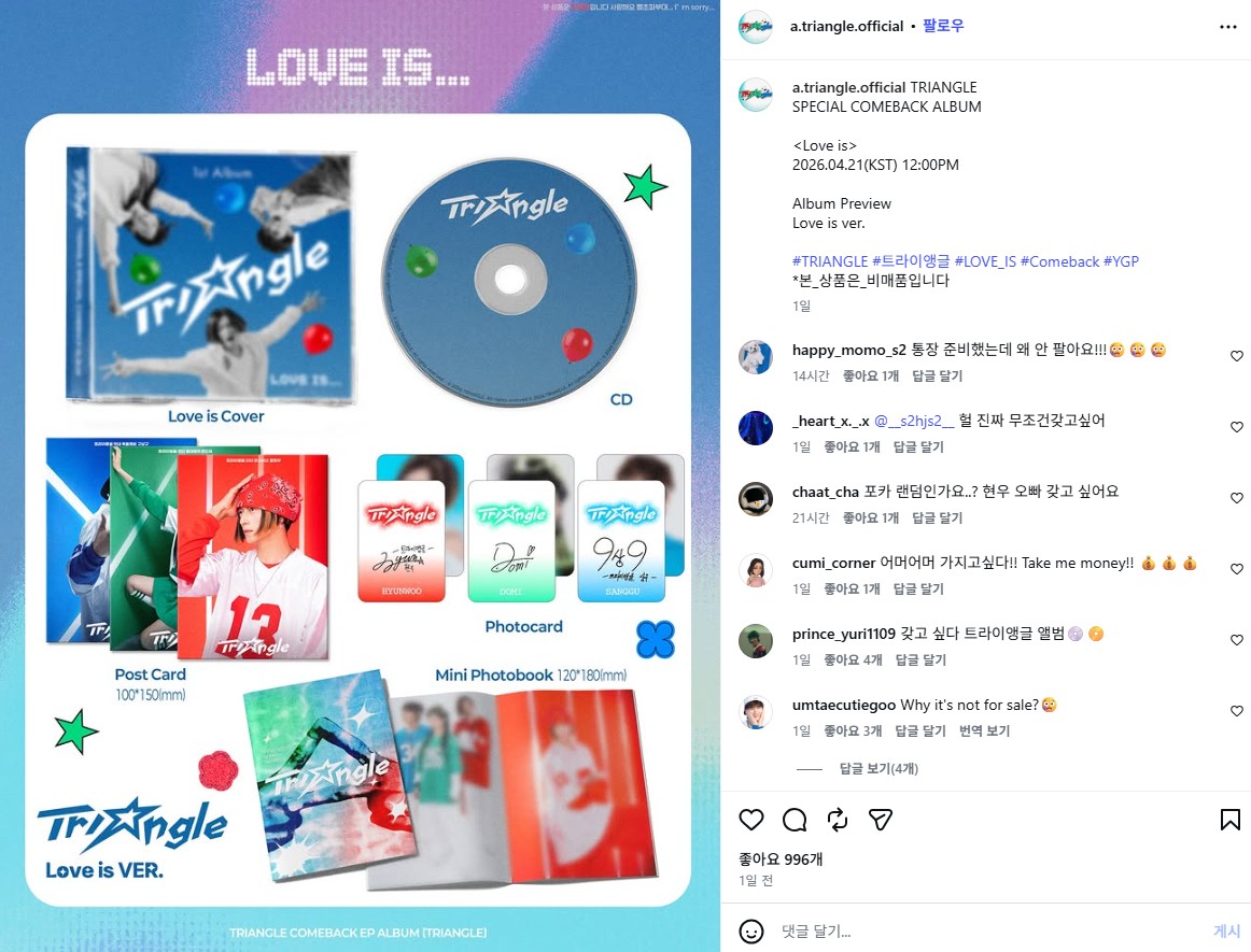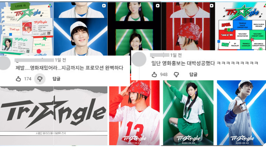 지난 4월 21일, 영화 《와일드 씽》의 배급사 롯데엔터테인먼트는 극 중 가상의 혼성 그룹 ‘트라이앵글’의 데뷔 싱글 ‘Love is’를 멜론, 지니, 스포티파이 등 실제 음원 플랫폼에 정식 발매했습니다. 뮤직비디오도 함께 공개됐습니다. 2002년 감성을 재현한 무대 의상, 90년대풍 안무, 그리고 놀랍도록 완성도 높은 노래까지! 이것이 영화 홍보물이라는 사실을 처음엔 아무도 믿지 않았습니다.