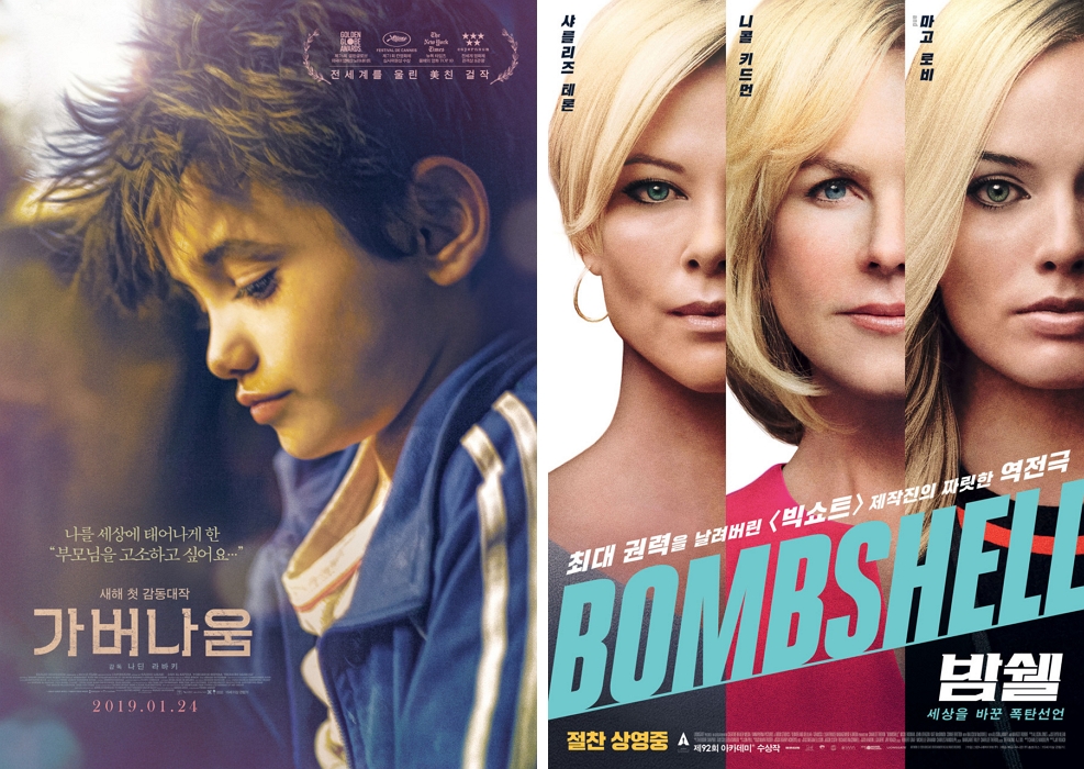 | <밤쉘: 세상을 바꾼 폭탄선언(Bombshell)>은 2019년 제이 로치 감독이 연출한 작품으로, 미국 폭스뉴스 내 성희롱 폭로 사건을 실화 기반으로 다뤘다. 샤를리즈 테론, 니콜 키드먼, 마고 로비가 주연을 맡았으며 아카데미 분장상을 수상했다. 국내에서는 코로나19 확산으로 대다수 외화 배급사들이 개봉을 보류하던 2020년 7월 개봉해 18만여 명을 동원, 해당 시기 외화 흥행 1위를 장기간 유지했다. |